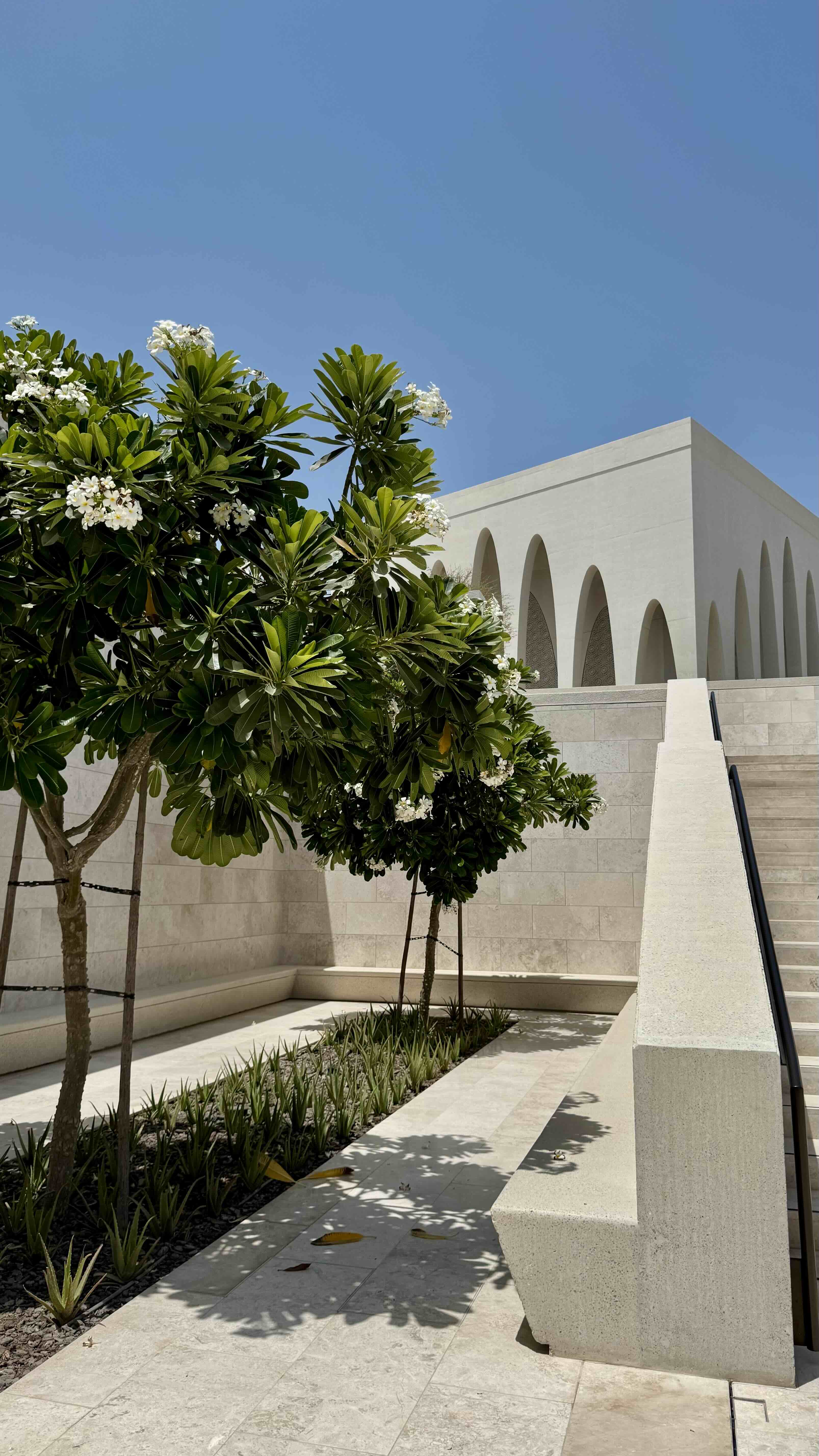 As with the other two sanctuaries, water welcomes visitors at the entrance. The mosque’s inner courtyard includes separate male and female ablution areas, concealed behind bronze gates that echo the rhythm of the façade arches. Water — a symbol of purification, life, and sanctity — becomes a shared element across all three religions, quietly emphasizing their common roots.