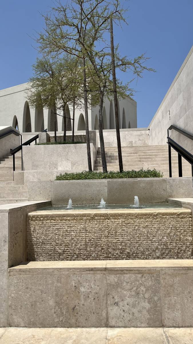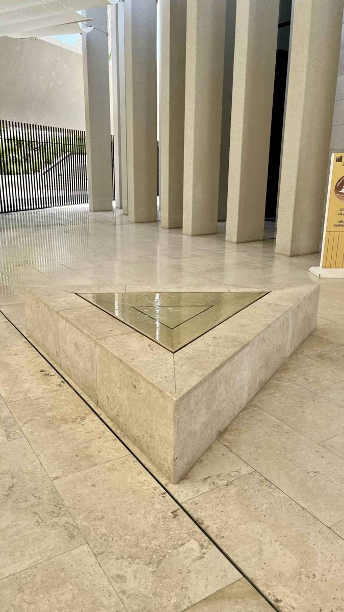 As elsewhere in the complex, a water feature marks the entrance — a reminder of baptism and spiritual renewal. Once again, water becomes the unifying symbol, connecting the three faiths through shared meaning.