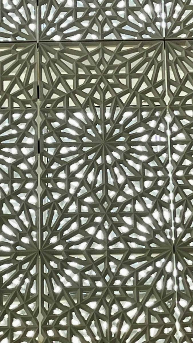 Quiet and restrained, the mosque seems to absorb the light that filters through its delicately patterned walls. Its architecture draws on traditional Islamic principles, where rhythm, symmetry, and calm become a language of spirituality. The façades are cut by seven elongated arches — a reference to the seven heavens, the seven days of creation, and the seven circuits of the Hajj.